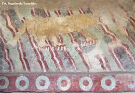 Jaguar na malowidle na Białym Dziedzińcu (Patio Blanco) w dzielnicy Atetelco w Teotihuacán (in situ) |